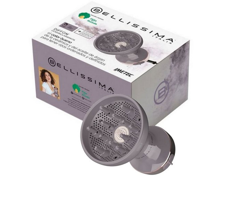 My Pro Diffon es ideal para secar los rizos con gran comodidad y tranquilidad: es ligero, cómodo de sujetar y usar alrededor de la cabeza, el difusor está integrado para no correr el riesgo de que se salga, la rejilla se ha diseñado para que el pelo no se enganche en el ventilador.