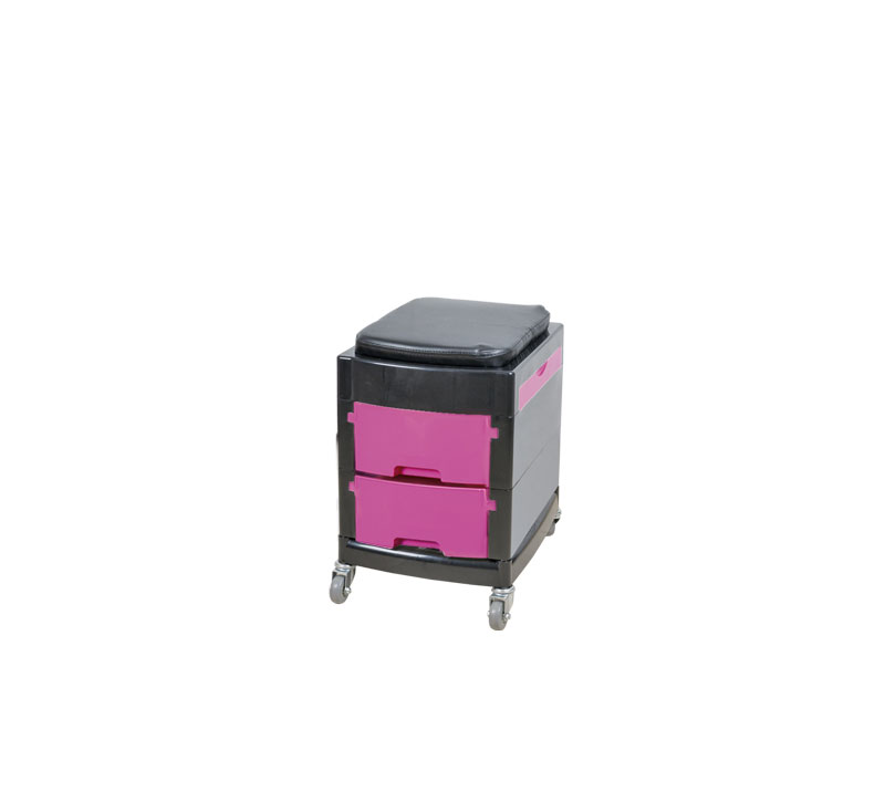 Carrito pedicura con bandeja lateral extraible y 2 cajones. Cojín y ruedecitas silenciosas para un fácil manejo.