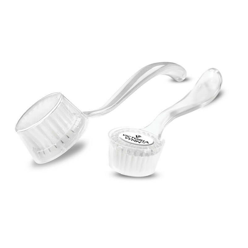 Muy práctico, con un agarre cómodo, tiene cerdas muy suaves protegidas por una cubierta de plástico.