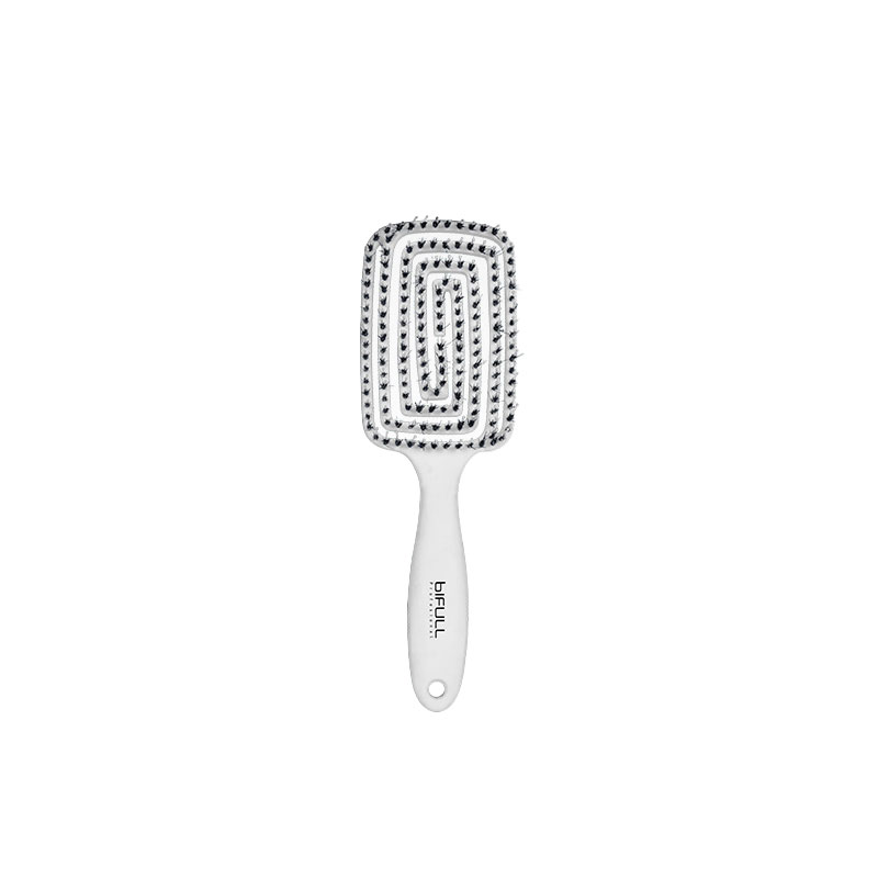 Cepillo esqueleto que aporta brillo y suavidad. El cepillo Maze es de estructura geométrica y flexible que se adapta de forma fácil a la cabeza para cepillar desde la raíz a las puntas. Su combinación de cerdas flexibles de nylon y pelo de jabalí aportan brillo y suavidad. Estimulan el cuero cabelludo mejorando el riego sanguíneo. Uso tanto en cabello seco como mojado.