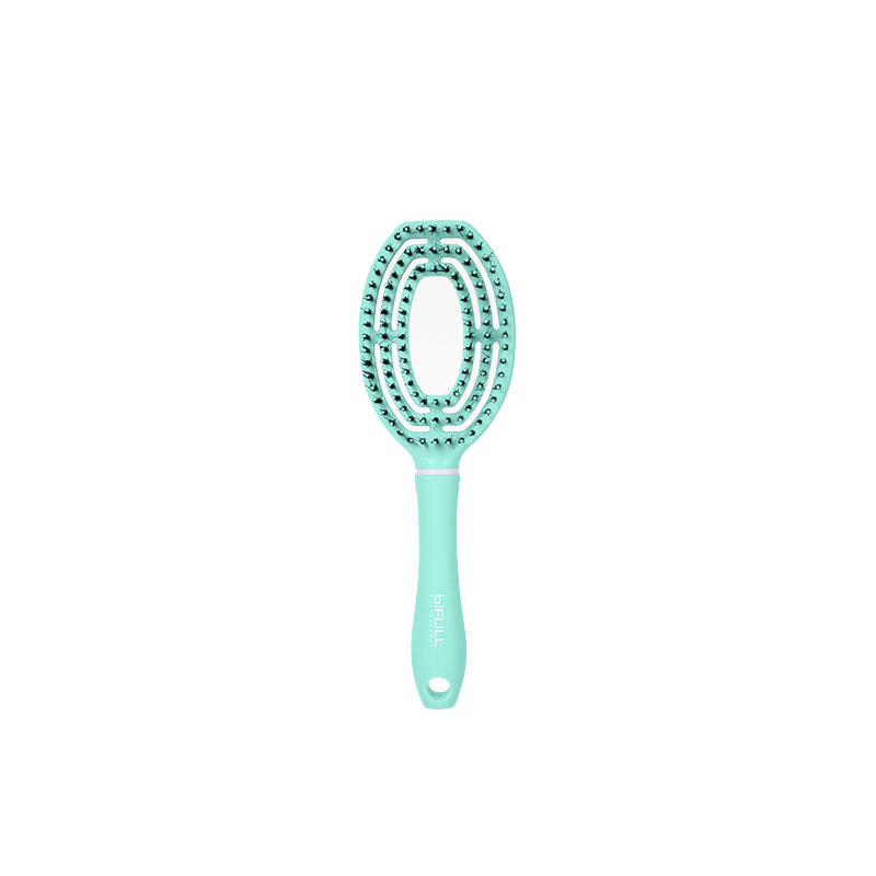 El nuevo cepillo Saturno es ideal para peinar, desenredar y masajear el cuero cabello. Con sus cerdas de pelo de jabalí y nylon los aceites naturales se distribuyen de forma homogénea por todo el cabello. Su esqueleto ahuecado permite la circulación de aire y un secado más rápido. Reduce el encrespamiento y las roturas. Ideal para todo tipo de pelo.