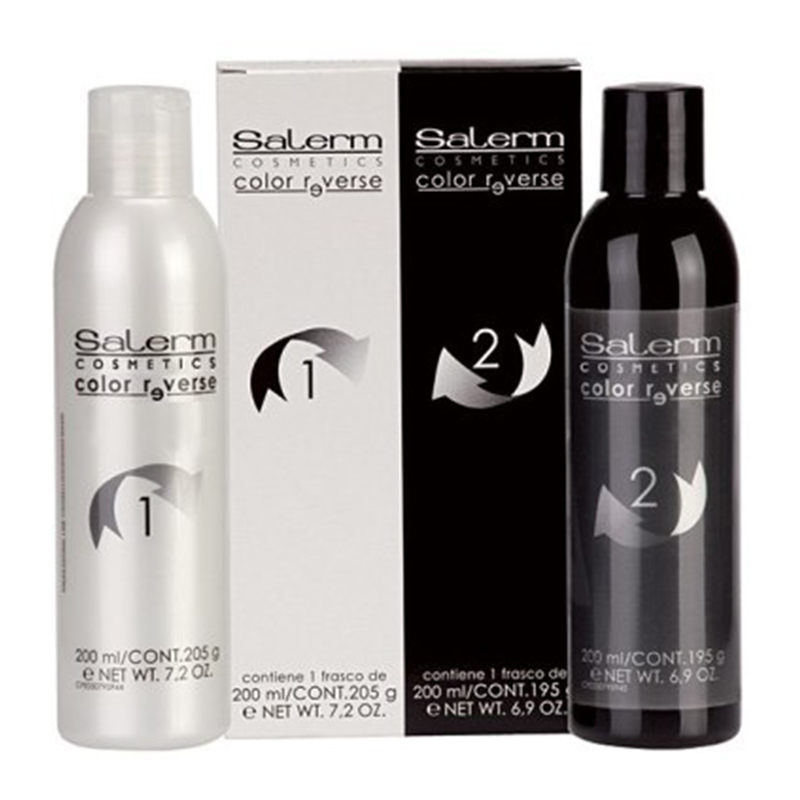 Mezclar a partes iguales Color Reverse 1 + Color Reverse 2 en un bol limpio. Agitar con la ayuda del pincel hasta obtener una mezcla homogénea. Aplicar directamente sobre los cabellos secos y sin lavar. Dejar un tiempo de pose de 20 minutos (se aconseja utilizar un gorro para mejorar el proceso). Transcurrido el tiempo de pose, enjuagar el cabello, con abundante agua y lavar con un champú Salerm. Siga cuidadosamente las instrucciones impresas en la etiqueta.Respetar estrictamente las proporciones de mezcla, el tiempo de pose y los pasos que se deben efectuar.