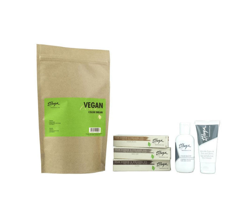 Kit en un sobre Kraft con 3 colores esenciales de la línea vegana, la solución especial tinte y nuestro color remover. Todos productos veganos para un servicio de tinte perfecto.