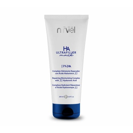 Mascarilla capilar hidratante y fortalecedora. Formulado con una combinación de diferentes pesos moleculares de Ácido Hialurónico y Botoxlike, repara e hidrata el cabello, y lo protege de los factores ambientales. Cabello brillante, suave, elástico y sin encrespamiento y suave