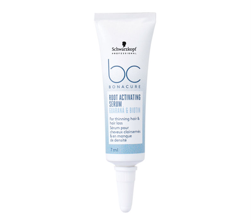 El Sérum Activador de Raíces de Bonacure, que ha sido aprobado dermatológicamente para cabello debilitado y con tendencia a caerse, reduce la caída del cabello no patológica* activando las raíces** y estimulando el cuero cabelludo, gracias a una mezcla única de compuestos dentro de su fórmula de rápida absorción, libre de*** y vegana**** con el Complejo Superfood.